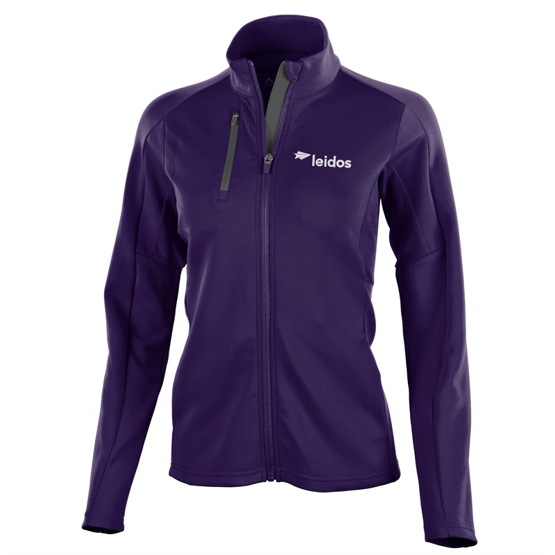 - 90% polyester/10% spandex interlock full zip jacket with self-fabric stand up collar