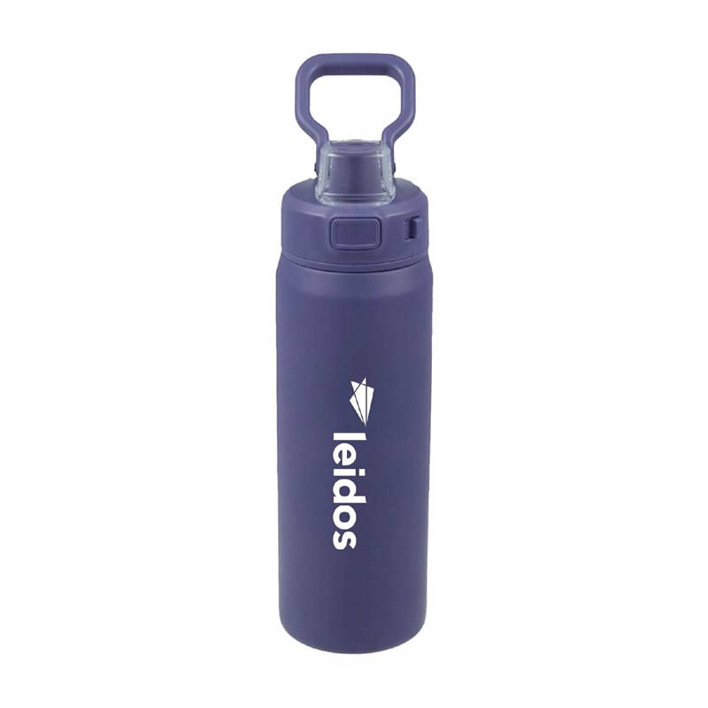 - Screw-on, spill-resistant lid with a button-locked flip-top spout
