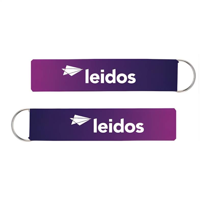 Always losing your keys? This brightly colored Leidos wrist strap key holder is the perfect solution! Easy to find, this elastic wrist strap with keyring makes it simple to find and organize your keys. Elastic and stretchable wrist band. Includes a sturdy keyring for most keys.