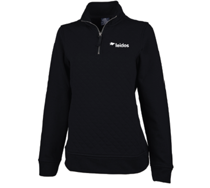 Color: Black with embroidered Leidos logo in white on left chest.